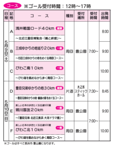 | 一般参加記念品等 | 記念品、ゼッケン、大会誌、参加者名簿、コース地図、バッジ、完歩証、2日間完歩記念品 ※中学生以下に記念品はありません。 |